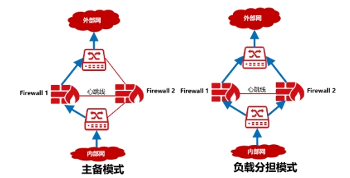 防火墙双机热备功能是两台设备通过独立链路连接(也称为心跳线),心跳线定时发送报文协商主备状态,备份会话等重要的状态信息和配置信息,以实现设备的高可用。根据组网情况双机热备有两种工作模式:主备模式和负载分担模式(主主模式)。