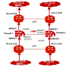 测试目的:两台防火墙通过心跳线检测相互状态。其中一台出现故障后,另一台会迅速接管所有业务。