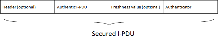 若通信的控制器之间需要实现SecOC协议,则发送和接收控制器都必须集成SecOC模块。原始报文称为Authentic I-PDU,SecOC模块基于原始数据和密钥,使用约定的算法得到MAC值。报文头、原始报文、新鲜度和MAC组装后得到Secured I-PDU,结构如下图所示。