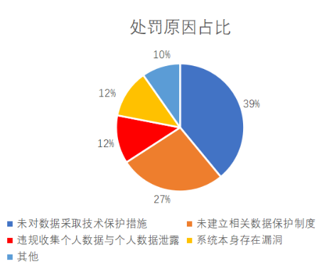 通过对所有数据安全处罚事件进行归因分析,发现未对数据采取相应的技术保护措施和管理制度的占比为66%。原因是大多数企业或组织对于数据安全的认知和重视性不足,投入较少,存在侥幸心理。