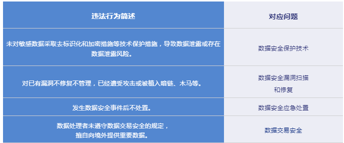 可将所有违法行为和其对应的问题进总结归类为四类问题。
