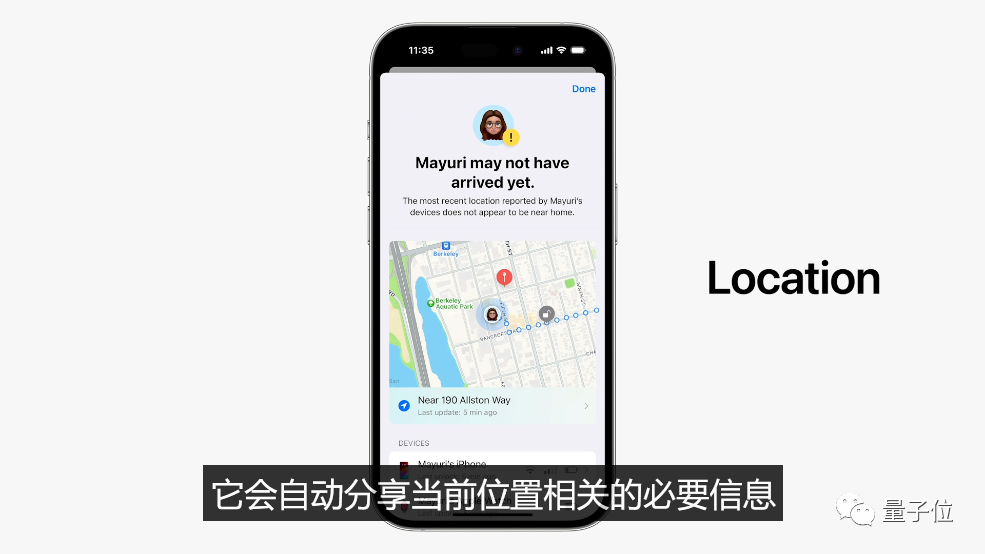 你还可以在iMessage和家人朋友共享位置、手机电量等信息。