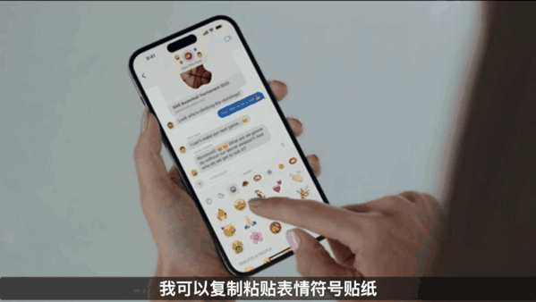 一个好玩的新功能是“贴纸”。简单来说,你可以把表情包实时贴到对话框里,就像这样: