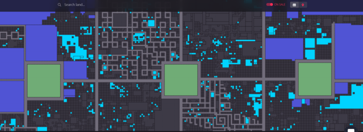 从上图中,紫色区域都是未开发区域,而绿色方块周边就是对应的市中心。Decentraland的土地一共为9 万个。