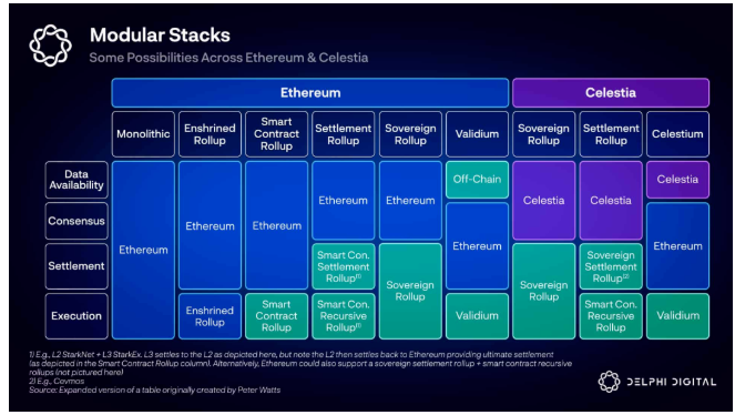 带火这个词的Celestia明年主网也该上线了,之前四层模型把各类Rollup拆成了花,各种的排列组合让不懂技术的小伙伴看的是头晕眼花。