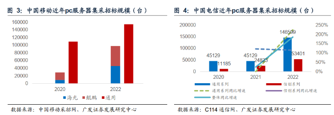 中国电信:20-22年中国电信的服务器集采招标数量分别为5.6万、7万、20万台 ,信创服务器占比分别为20%、35%、27%