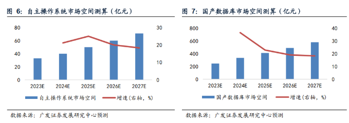 操作系统:预计23-27年自主操作系统市场空间分别为33亿、40亿、50亿、60亿、71亿元。