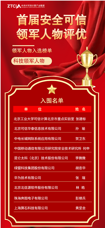 为落实《网络安全法》、国家等级保护制度和国家关键信息基础设施保护条例要求,进一步促进可信计算产业生态快速发展,引领成员单位在主动免疫可信计算核心技术上取得突破,加快安全可信的产品和服务推广应用,在中关村可信计算产业联盟成立八周年之际,可信联盟特举办首届“安全可信领军人物”“安全可信解决方案”“安全可信突出贡献企业”评选表彰活动,同时启动首批安全可信专家人才征集活动。