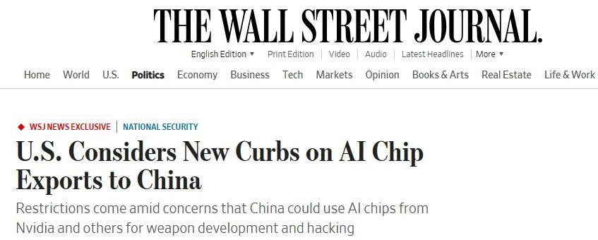 华尔街日报(WSJ)引述知情人士消息称,对中国大陆人工智能(AI)技术实力日益成长的担忧,促使拜登政府考虑对中国实施新一波AI芯片出口管制。
