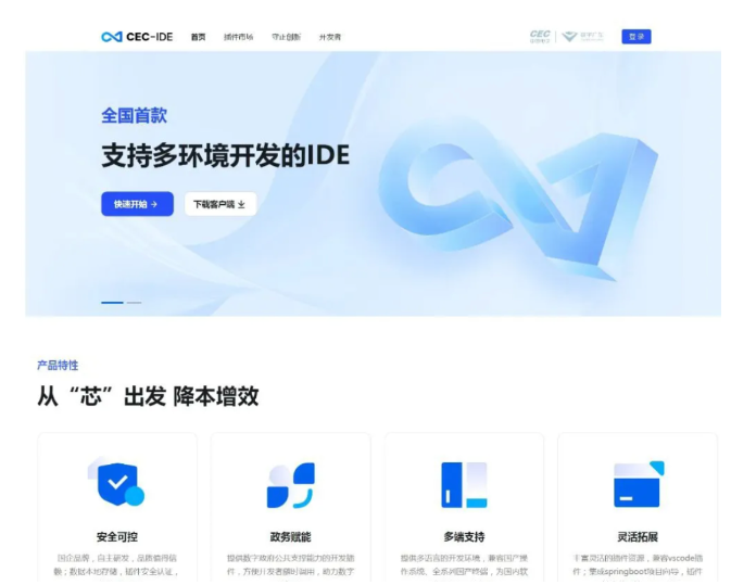 在 CEC-IDE 官网简介中的“安全可控”介绍为:“国企品牌” + “自主研发”。