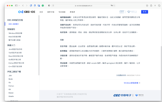 之后,数字广东在 8 月 25 日限制外界访问 CEC-IDE 官网。随后 CEC-IDE 官方文档手册、欢迎页和插件市场均无法正常显示。