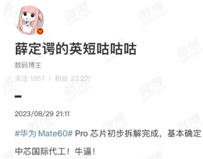 对此,数码博主“薛定谔的英短咕咕咕”也表示,基本可以认定是中芯国际代工。