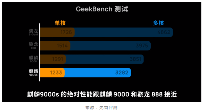 性能方面,麒麟9000s的跑分与此前的旗舰相比,还有不小的差距。