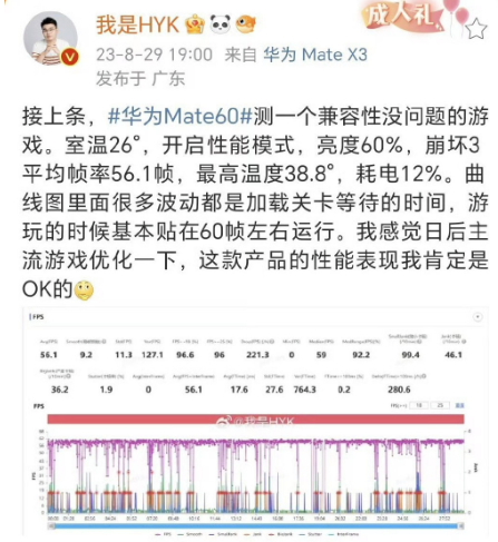 在实际游戏体验上,根据“我是HYK”的测试,崩坏3的平均帧率可以达到56帧。如果之后还可以进一步优化的话,性能表现还是不错的。