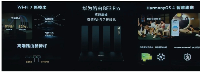 华为对路由 BE3 Pro产品并没有进行过多详述,新款路由器支持双频聚合,能够实现下载速率提升81%,游戏时延缩短一半。搭载HarmonyOS4 的智能路由也能够实现智能游戏加速和儿童上网关怀,针对性增加了电竞网口和2500兆网口。
