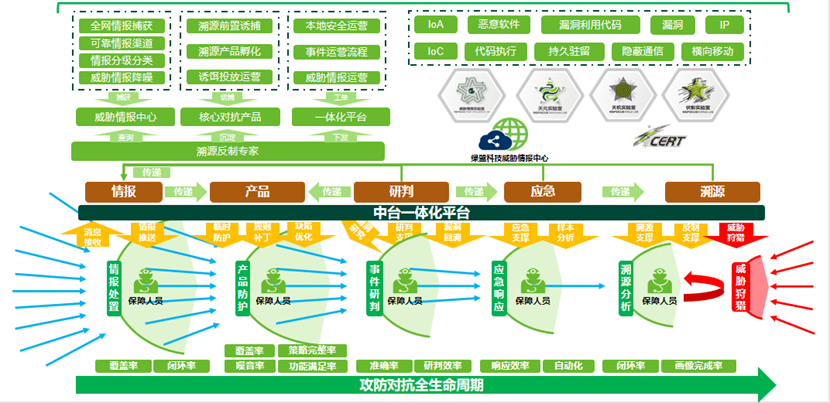 依托安全保障中台,构建云地一体化联防联控安全保障体系,利用情报协同联动机制,持续有效地进行威胁监控、分析研判、应急响应、溯源反制等网络攻防演练保障工作。