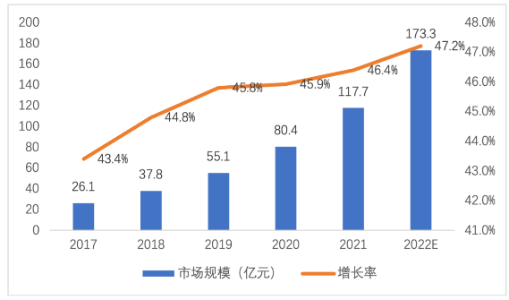近年来,在云计算和网络安全产业蓬勃发展的背景下,我国云安全行业市场增速迅猛,在网络安全市场总体规模中占比不断上升。据计世资讯统计,近5年我国云安全市场保持40%以上增速,2021年中国云安全市场规模达到了117.7亿元。预计2022年,行业整体规模将达到173.3亿元,同比增速为47.2%。
