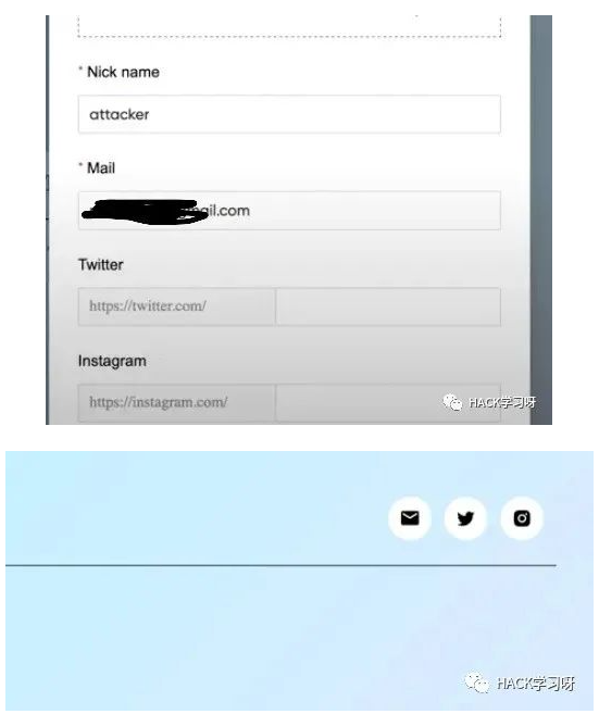 5.是的!!!我们能够用我们自己的价值观修改受害者用户的个人资料。我们能够使用我们自己的控制值修改受害者的电子邮件、Twitter、Instagram 链接